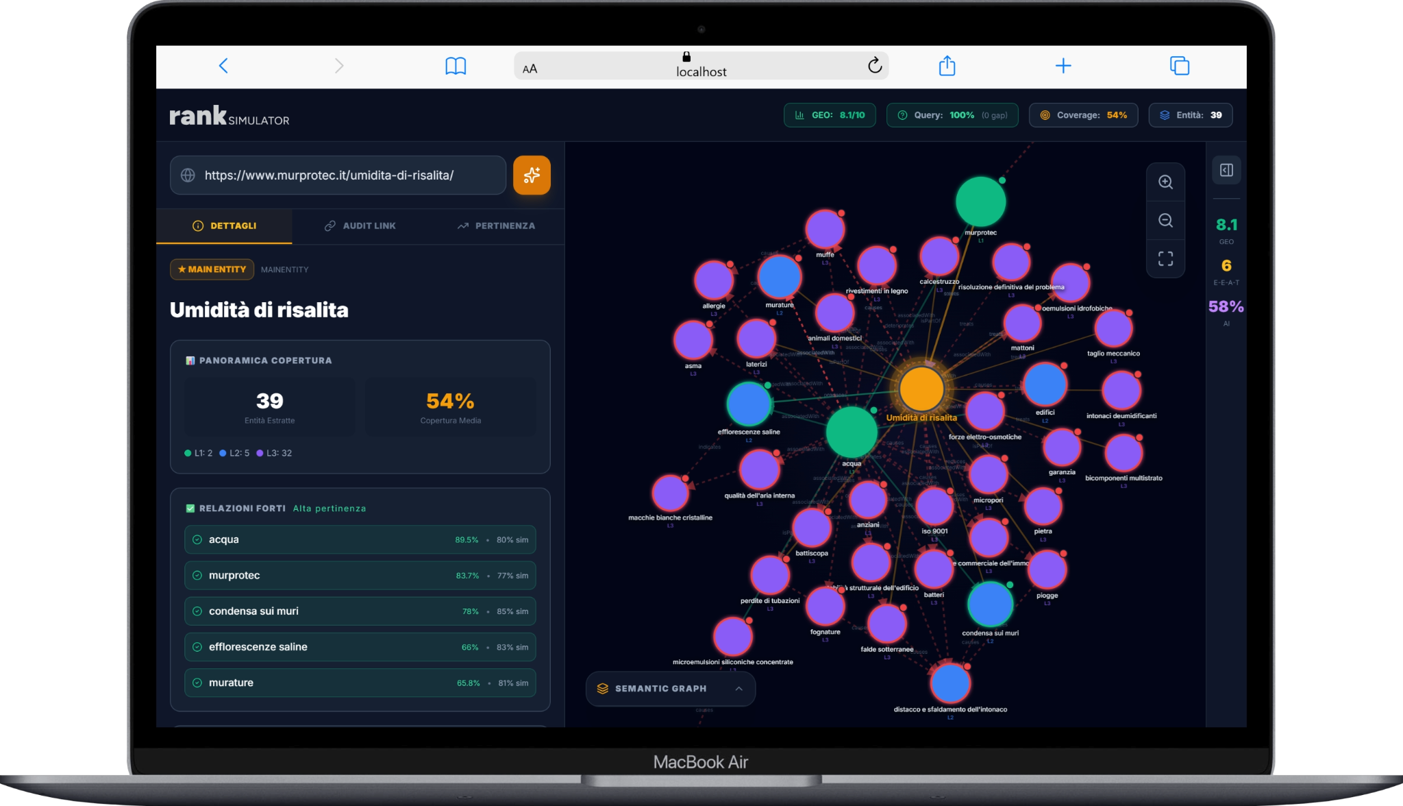 Partecipando al focus group, potrai testarlo in anteprima e confrontarti con altri operatori del tuo settore. Il tuo feedback ci permetterà di affinare Rank Simulator partendo dalle esigenze concrete del mercato.