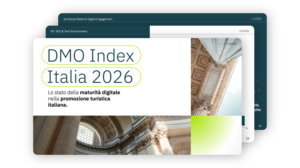 Il DMO Index Italia analizza il livello di maturità digitale e strategica delle Destination Management Organization italiane: dalla strategia e visione, all’uso di dati e tracking & analytics, SEO e infrastruttura tecnologica, AI e assistenti virtuali, social media e accessibilità. Oltre alla valutazione, fornisce raccomandazioni strategiche per migliorare performance, competitività e impatto delle destinazioni.